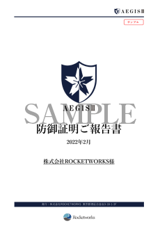「イージス」ご契約のお客さまへは、攻撃があった際のリアルタイムご報告メールとあわせ、画像の「月次防御証明報告書」を毎月送付します。